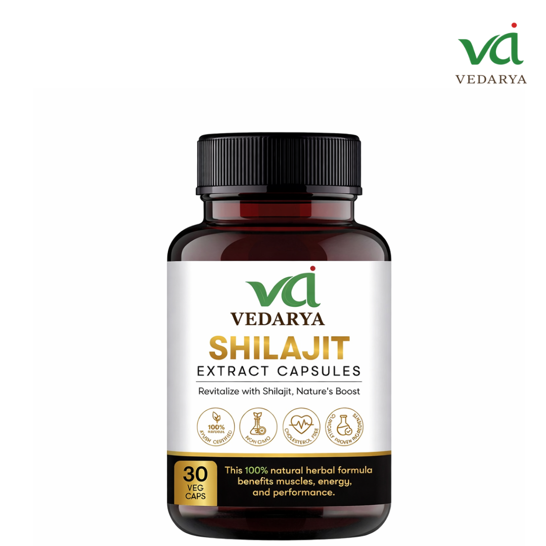 Experience the power of ancient Ayurveda with Vedarya Shilajit Extract Capsules, crafted to restore energy, strength, and overall vitality. Sourced from high-altitude regions and processed with advanced purification methods, Vedarya Shilajit delivers nature’s most powerful mineral-rich extract in a convenient capsule form.